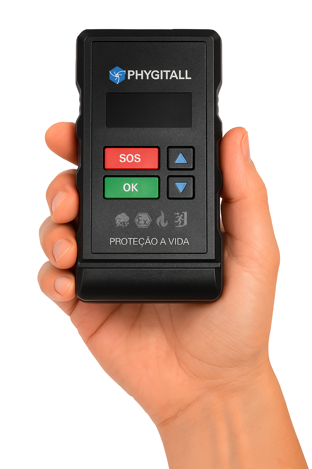 Intuitivo e fácil de acionar em situações de emergência, com apenas um toque, ele alerta a plataforma central, acionando os brigadistas imediatamente.